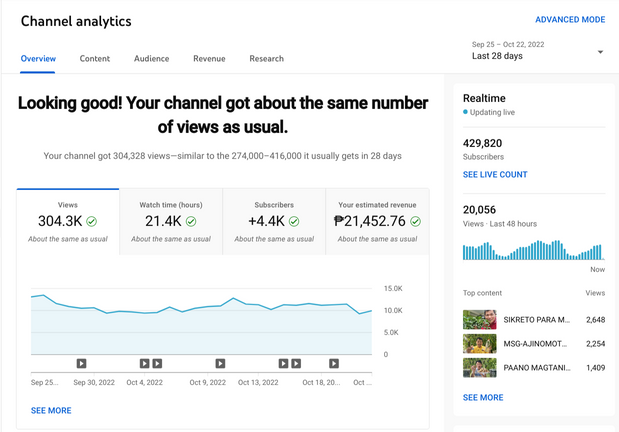 Youtube earnings: